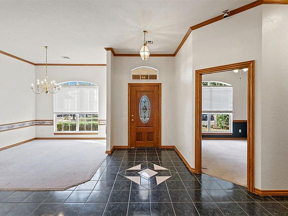 Great price and well located with lots of space for the money. Attached sunroom with approximately 450 sq ft that is not included in the total square footage. Beautiful treed neighborhood with its own pool area. A fun area to walk through with several ponds within the addition. The house has 3 beds and a study or could be 4 beds. Oversized 3 car garage with built in storm shelter. If needed, many handicap accessable features have been added such as in the shower and in a half bath you have room for an electric wheelchair. Extra plus, the property is close to charming downtown and the Lake Arcadia playground. A must see for your family.