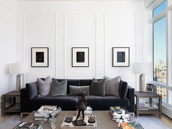 Welcome home to pure Lincoln Square Bliss, This a VERY RARE CORNER condo unit to hit the market at the very exclusive 200 Amsterdam Avenue. This home was redone by one of the best designers Stephen Saint-Onge with many luxury pieces from RH. This generously proportioned 2,139 square foot, two-bedroom, two-and-a-half bath condominium has a gracious layout and striking city and Central Park views. The Foyer, with a White Ice marble floor, leads to an expansive Living and Dining area with 10’ ceilings, custom French White Oak floors in a chevron pattern, and floor-to-ceiling windows. Sliding glass panels allow for either an open or closed Kitchen which itself is a showpiece blending slabs of honed Calacatta marble with custom Italian-made oak cabinetry and brushed nickel accents. A large waterfall-edged center island provides seating for three and houses the Miele dishwasher, an under-mount sink with a Kallista faucet and pull-out spray, and abundant storage and workspace. State-of-the-art appliances include an integrated oak paneled Sub-Zero refrigerator, freezer, and wine chiller, a 36” Wolf Dual Fuel Range, and a Miele speed oven and warming drawer. Above the range, a striking slab of marble ingeniously conceals an externally vented hood creating an ideal balance of beauty and function. The corner Primary Bedroom Suite is a spacious retreat complete with two walk-in closets and a windowed Primary Bath whose cool palette epitomizes serenity and features a Calacatta Cielo feature wall, white marble, and lacquer vanity with double sinks, Iceberg marble floor with radiant heating, a walk-in shower with marble bench, a free-standing soaking tub, and Toto toilet. Polished nickel sink and bath fittings by Fantini, Jonathan Browning wall sconces, and recessed niches add elegant, well-considered touches. The second bedroom also has an en-suite bath which is a continuation of the superior design and neutral palette epitomized in the Primary Bath.. The Powder Room is a glamorous tribute to old New York with a custom mosaic floor in Vanilla Pearl and Saint Laurent marble. Together with a hammered metal sink, Murano glass handles, and custom glass pendant light, this room leaves a lasting impression and expresses an eye for detail, function, and quality.