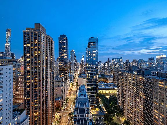 Wrapped in floor to ceiling windows, this stunning 2,589 square foot, four bedroom, four and a half bath condominium has an elegant and versatile layout with open city and park views and abundant natural light from three exposures. A large Foyer, with a White Ice marble floor, and Gallery lead to an impressive corner Living and Dining area with 10’7 ceilings, custom French White Oak floors in a chevron pattern and soaring, floor to ceiling windows facing South and East offering sensational views of the Manhattan skyline and Central Park. The open Kitchen is a striking showpiece blending slabs of honed Calacatta marble with custom Italian made oak cabinetry and brushed nickel accents. A large waterfall edged center island provides seating for four, and houses two Miele dishwashers, an under-mount sink with a Kallista faucet and pull-out spray, and abundant storage and work space. State of the art appliances include an integrated oak paneled Sub-Zero refrigerator and freezer, a 48” Wolf Dual Fuel Range and a Miele speed oven and warming drawer. Above the range, a striking slab of marble ingeniously conceals an externally vented hood creating an ideal balance of beauty and function. A dedicated wet bar has a Sub-Zero wine chiller, refrigerator drawers and sink. Located on the Southwest corner of the residence, the Primary Bedroom Suite is a spacious retreat complete with two closets, including a large walk-in, and a windowed Primary Bath whose cool palette epitomizes serenity and features a Calacatta Cielo feature wall, white marble and lacquer vanity with double sinks, Iceberg marble floor with radiant heating, a walk-in shower with marble bench, a deep soaking tub, and Toto toilet. Polished nickel sink and bath fittings by Fantini, Jonathan Browning wall sconces and recessed niches add elegant, well-considered touches. The apartment also has three additional bedrooms with en-suite baths that are a continuation of the superior design and neutral palette epitomized in the Primary. The Powder Room is a glamorous tribute to old New York with a custom mosaic floor in Vanilla Pearl and Saint Laurent marble. Together with a hammered-metal sink, Murano glass handles and custom glass pendant light, this room leaves a lasting impression and expresses an eye for detail, function and quality.