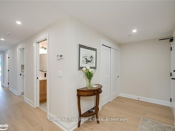 Experience the elegance and space of this stunning new condominium at RiversEdge, the premier residence situated along the scenic shores of the Muskoka River in Bracebridge. This thoughtfully designed two-bedroom suite, complemented by a spacious den and 2.5 bathrooms, occupies the entire end on the third floor, offering approximately 1,682 square feet of refined living space, panoramic views, and exceptional privacy. The condo is nearly move-in ready, finished to the trim and primed for your personal paint and flooring selections. (Photos are of an identical model suite.) Included are a selection of luxurious finishes, including quartz countertops, hardwood flooring, porcelain tile, and premium stainless steel appliances. Additional amenities include heated floors, ductless air conditioning, and recessed pot lighting throughout. RiversEdge provides a range of shared amenities designed for comfort and entertainment, such as a party room, car wash, fitness center, screened Muskoka room, river-view patio, underground parking, and storage facilities. Enhance this offering with an optional boat dock for just $30,000, transforming the property into a true waterfront retreat. Discover what luxurious Muskoka waterfront living could be for you. Schedule your visit today to experience all that RiversEdge has to offer.