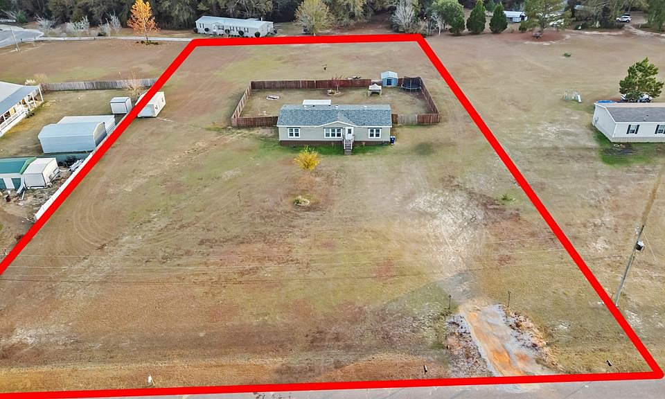 Beautiful double-wide home on nearly 2 acres in the highly desirable Headland School District. This 3-bed, 2-bath property offers a spacious 1,920 sq ft open-concept layout with a split-bedroom design. The primary suite features a luxurious bathroom with a soaking tub, separate shower, and dual vanities. The kitchen includes an oversized pantry, a custom hood, and all appliances remain. The tankless water heater provides endless hot showers. Outside, the fenced backyard, two outbuildings (one with power), and the covered back porch elevate the country living experience. The roof is only 5 months old. The subdivision offers underground utilities, beautiful landscaping, and the privacy buyers want. Welcome to Bradford Subdivision.