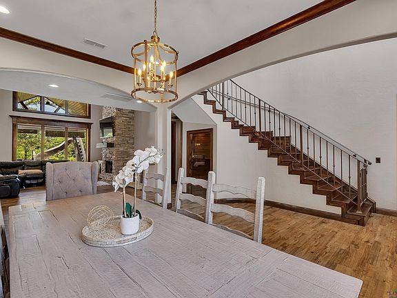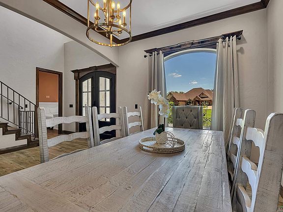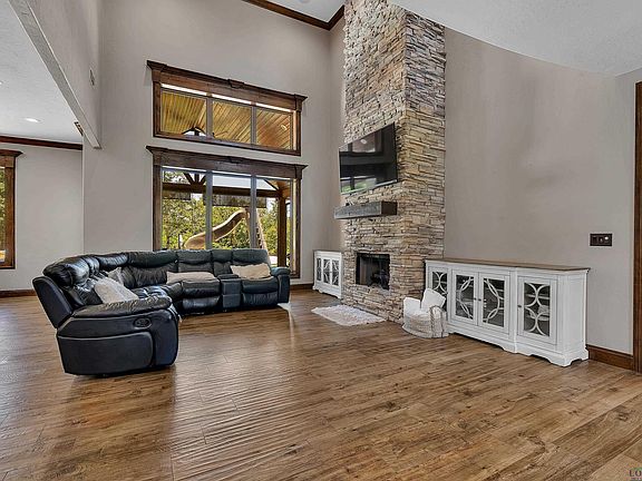 No detail was overlooked in this exquisite and expansive 2020 custom built home nestled within the gated neighborhood of Timber Falls in sought after Hallsville ISD. Situated on a sprawling 1.88 acre lot, this stunning residence offers the epitome of privacy and tranquility. Upon entering, you are greeted by a grand foyer with a magnificent staircase. The main level is designed for both relaxation and entertaining, featuring a spacious primary bedroom suite, and two guest bedrooms. The gourmet kitchen is a chef’s dream, offering stainless steel appliances, a walk-in pantry, a convenient breakfast bar, and a cozy breakfast nook overlooking the lush backyard. The adjacent dining room and living room provide plenty of space for formal gatherings and everyday living. Escape to the expansive primary bedroom suite and discover a private sanctuary with a large closet and a luxurious primary bathroom featuring dual sinks, a built-in vanity, a stunning pedestal tub and an impressive shower. Upstairs you will discover 3 more guest bedrooms. Entertainment options abound outdoors with a fenced backyard oasis that includes a sparkling pool with sun shelf, built in pool seating, a soothing spa and an exhilarating slide, offering the perfect setting for enjoying sunny days with family and friends. Additional highlights include an outdoor half bath for pool and an outdoor shower, a wine cellar tucked under the staircase, ideal for wine enthusiasts, and a conveniently situated laundry room on the main level. Schedule your private tour today and discover all the luxury, space and privacy this magnificent home offers.