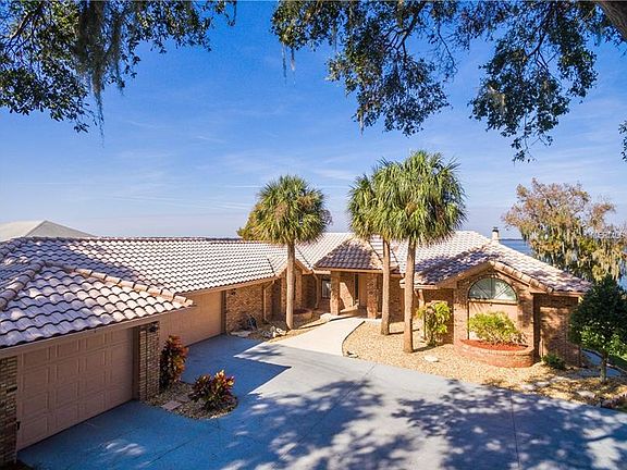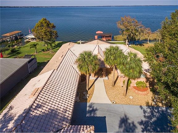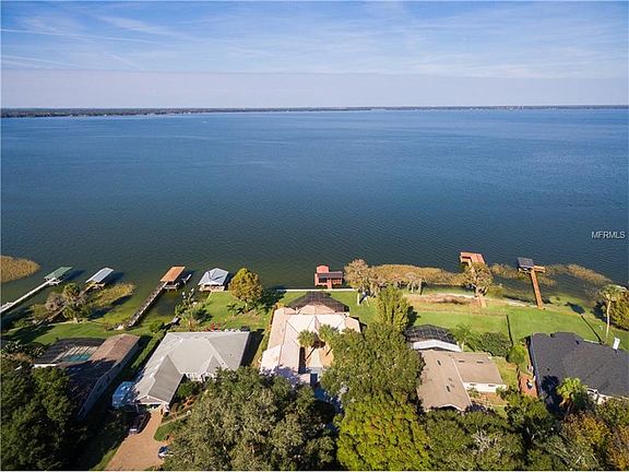 Custom Lakefront Pool home on Lake Eustis with over 5200 sq ft of living space. This one of a kind brick home has an oversized 3 car garage for a boat or large truck and a walk out basement to your oversized pool overlooking Lake Eustis. This home does have a screened in boat house to sit out on the Lake with a covered boat lift. This home has all of the usual rooms but also boasts a Game room, 2nd Living room with a fireplace, full wet bar area, Wine Cellar, Hobby Room and Gym or Dance studio. The arrangement is the main floor accompanies the Master bedroom with a full sitting room and fireplace and 2 additional bedrooms on a split plan. Downstairs has the additional 2 bedrooms, bonus room, wet bar area, wine cellar and pool table area with sliders out to the pool. There is a new deck area off the kitchen so you can sit outside and enjoy the lake while eating your morning breakfast while watching the sun come up. The Kitchen which has beautiful views and a combination of Granite and Corian countertops has 42 inch Cabinets with crowned molding. This home is located on a private street but 2 miles to 441 where all of the stores, shopping and restaurants are close by. This home is great for a large family or if you like to entertain guests. A must see to appreciate.