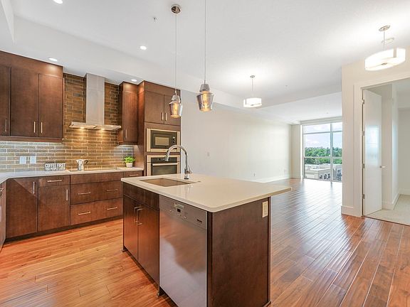 UNIQUE 8th floor unit PARAMOUNT GOLD package- 10 foot ceilings, oversized windows, oversize interior & entry door plus upgraded finishes! Kitchen has quartz countertops, MIELE appliances, ultra quiet dishwasher, gorgeous metallic gold backsplash, touchless faucet, refrigerator has ice/water & custom pendant lighting & gorgeous dark cabinetry. Engineered hardwood flooring. Bathroom has heated tile flooring, quartz countertops. Living room has fireplace with floor to ceiling tile surround, 65 inch SONY TV & Sonos sound bar. Balcony has all the conveniences for condo living - gas for BBQ & water tap. Concrete/steel bldg & heated underground parking spot- storage cage included. Wellness Centre has social room, exercise room & roof top terrace!! Shop at Italian Bakery’s Mercato or the many restaurants or enjoy a stroll in the river valley!! GORGEOUS VIEWS facing northwest for perfect sunsets & tree views! Builder suite size is 781 square feet.