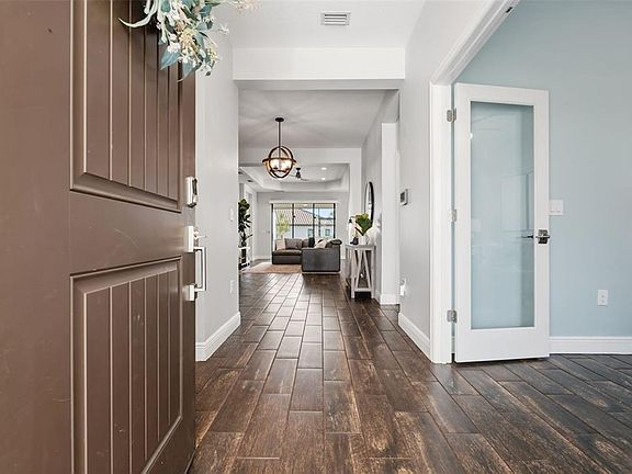 Welcome home! This 2018 Neal-built residence is located in the gated community of Milano in Nokomis— close to both Venice and Sarasota. This three bedroom + den, two and a half bathroom home is situated on a desirable corner lot with no neighboring homes across the street or to one side of the residence—providing a more open and spacious feel to the exterior of the home. As you enter the home, you are met with designer-selected wood-look tile flooring throughout the main living areas and carpet in the three bedrooms. The kitchen features an abundance of cabinet, countertop, and pantry space for the chef of the home to utilize and enjoy. Quartz countertops with a complementing backsplash, a farmhouse sink, stainless steel appliances (gas stove), and pendant lighting can all be found in the kitchen area which is open to the dining room and great room. In the great room you will notice a tray ceiling with recessed lighting, a ceiling fan, and “behind the wall wiring” to mount a TV. The screened lanai overlooking your fenced backyard is the perfect spot to enjoy your morning coffee/afternoon cocktail with room to expand this space if desired. The formal dining area enjoys plenty of light from the numerous windows. The primary suite located at the back of the home offers privacy and includes an oversized walk-in shower, dual sinks, cultured marble countertops, two walk-in closets, and a tray ceiling. The two guest bedrooms share a bathroom with a shower/tub combo. The home has a HUGE dedicated laundry room complete with a sink and storage cabinets. The half bath offers convenience when entertaining at home. The den at the front of the residence includes French doors and is an ideal spot for an office, additional TV room, or home gym. Plenty of storage can be found throughout the home with numerous storage closets. The property includes an alarm system and other smart features such as a smart door lock, thermostat, cameras, and lights. This home is also equipped with a water filtration system for the entire home. For peace of mind during storm season, the entire home is equipped with hurricane shutters. Located in an X flood zone so no need for flood insurance. Milano is a gated, resort-style, natural gas community, with top-tier amenities including a heated pool & spa, clubhouse, outdoor pavilion, tennis/pickleball courts, dog park, and bocce. There is even a lifestyle director on staff to organize events for the community. The HOA is just $543.16 per quarter and pays for the amenities, various activities, landscaping of the common areas, and community gates. There is NO CDD fee in this community and this home is located in X flood zone— so no flood insurance needed. Owners may rent their property on a six-month minimum lease period. Publix grocery store is 2.6 miles away, Venice Island/downtown Venice 6.5 miles, downtown Sarasota 17 miles and your choice of Venice and Nokomis beaches are 7 miles away with other beach options just a few miles further. Venice Island is known for its beaches, shopping, dining, splash pad, parks, playgrounds, fishing pier, tennis courts, weekly farmer’s market, tons of events, and so much more! Schedule your showing today and start living the Florida lifestyle! (See floor plan in photos.)