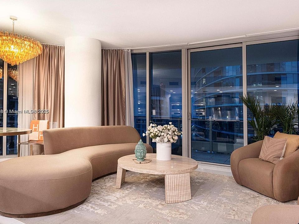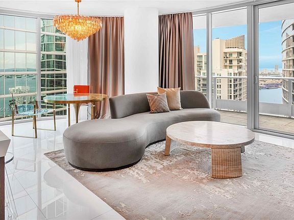 CORNER UNIT.. HIGH END FURNISHED ....Rare layout with floor-to-ceiling windows, porcelain white glass floors, and a 330 sq.ft. marble wraparound terrace with panoramic 180° views of the Intracoastal, Biscayne Bay, and Miami skyline. Each bedroom has a private balcony. Master Suite: Greek-style Jacuzzi tub, rain shower, walk-in closet Living Room: High-end seating in natural wool, complemented by curated natural stones, bronze mirrored accents, and premium RH outdoor furniture. Sub-Zero refrigerator/freezer with ice maker, Miele flat cooktop, stainless steel Miele electric oven, washer/dryer in-unit. Epic Hotel & Residences features resort-style pool, Exhale Spa, Technogym fitness center, 24-hour concierge, valet, in-residence dining, restaurants Zuma and Area 31, access to Epic Marina.