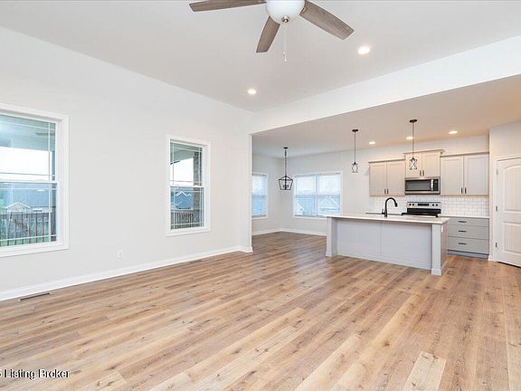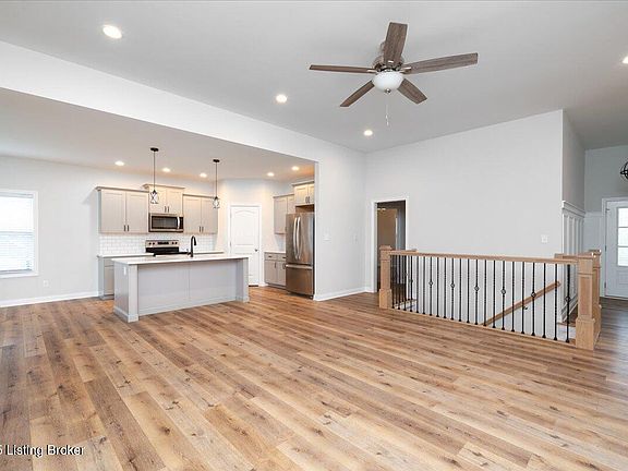 Move- Right into this home in Grand Oaks Subdivision!  This beautiful 4-bedroom, 3-bathroom walkout ranch in northern Bullitt County is ready for immediate possession! The main level boasts a spacious great room, a dining area perfect for meals or entertaining, and a stylish kitchen with quartz countertops, an island with seating, ample cabinetry, and a pantry. The primary suite offers a luxurious retreat with a large tiled walk-in shower with Bluetooth speaker, double vanity, private toilet area, and a huge walk-in closet. Two additional bedrooms and a full bathroom are located on the opposite side of the home. The partially finished basement provides extra living space, including a family room with a wet bar, a guest bedroom, a full bathroom, and plenty of unfinished storage or customizable space. Outside, enjoy a covered deck with a ceiling fan for morning coffee or relax on the basement-level patio. This home also comes with a 1-year HSA home warranty. Don't miss out on this incredible opportunityschedule your showing today and make this house your new home! Buyer or agent to verify square footage.