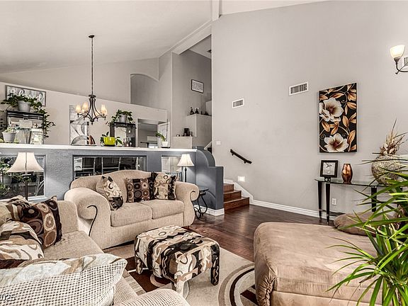 Welcome to this absolutely adorable 2-story charmer with a 3-car garage where style, comfort, and space all come together! Greet your guests in the bright living room featuring vaulted ceilings and gorgeous hardwood floors, or cozy up in the inviting family room by the warm relaxing fireplace. Cook up culinary magic in the delightful kitchen with stainless steel appliances, double wall ovens, granite counters, crisp white cabinetry, and a center island with a breakfast bar perfect for morning chats. The main bedroom is a true retreat, offering dual vanities, a relaxing soaking tub, and a roomy walk-in closet. Need more space? The secondary bedroom is versatile enough for a media room or home office! Enjoy Vegas evenings under the covered patio while soaking in mountain views and the lush beauty of artificial turf. Conveniently located near parks, schools, and freeways. This home is the perfect one for you! Start creating lasting memories in this gem! Highly upgraded FORMER MODEL!