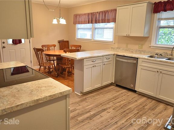 This charming little rancher was updated in 2019 w/ new windows, doors, roof, gutters, A/C unit & more. As you enter the eat-in kitchen, you will be amazed at this light, bright space w/ hardwood & laminate floors, new countertops & stainless appliances. The cozy living room is adorned with a brick fireplace & hardwood floors. The quaint master bedroom has hardwood floors and a nice half bath. The guest bedroom has hardwood floors and a large closet. The hall bathroom services the bedrooms. Off of the main living area is a 3rd bedroom, currently being used as a Den/Office.)The lightly finished walkout basement area has huge potential. It is currently set up as a family room with another smaller game room area. The outdoor space is adorned with a large front deck that has winter mountain views and features a yard that is almost completely fenced. The yard is well landscaped with trees and ornamental plantings. This is a must see home.
