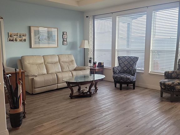 Lovely 2022 home with 3bd/2bth/2 car garage with a nice sized customized attached Shop! Situated in the upscale 55+ Gated Quail Run Community; the Master bedroom has a trayed ceiling and is spacious with a walk-in closet; ensuite bathroom is roomy with a tub/shower with handrails, double sinks and lots of cabinets; Kitchen has an island, skylight, pantry, dishwasher, refrig and range; formal dining area; 2 other bedrooms are on the opposite side of the home; all room have custom window blinds and curtains; back yard is fenced and landscaped with a westerly view of the mountains; there are 2 handrails on the covered back porch for ease of steady stepping; Quail Run is a friendly senior community with many seniors who enjoy the clubhouse activities and events; Clubhouse has huge kitchen with all amenities for members; there is a nice swimming pool behind the the clubhouse and also a game room; there is a Manager on site daily; Monthly lot fee covers sewer and garbage pickup; there is generous parking for extra vehicles, travel trailers and RV's for a small monthly fee.