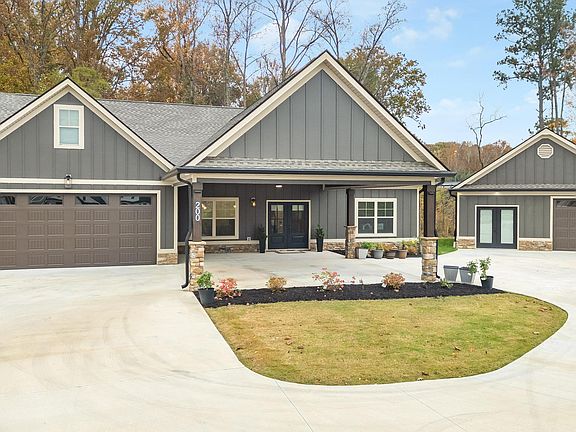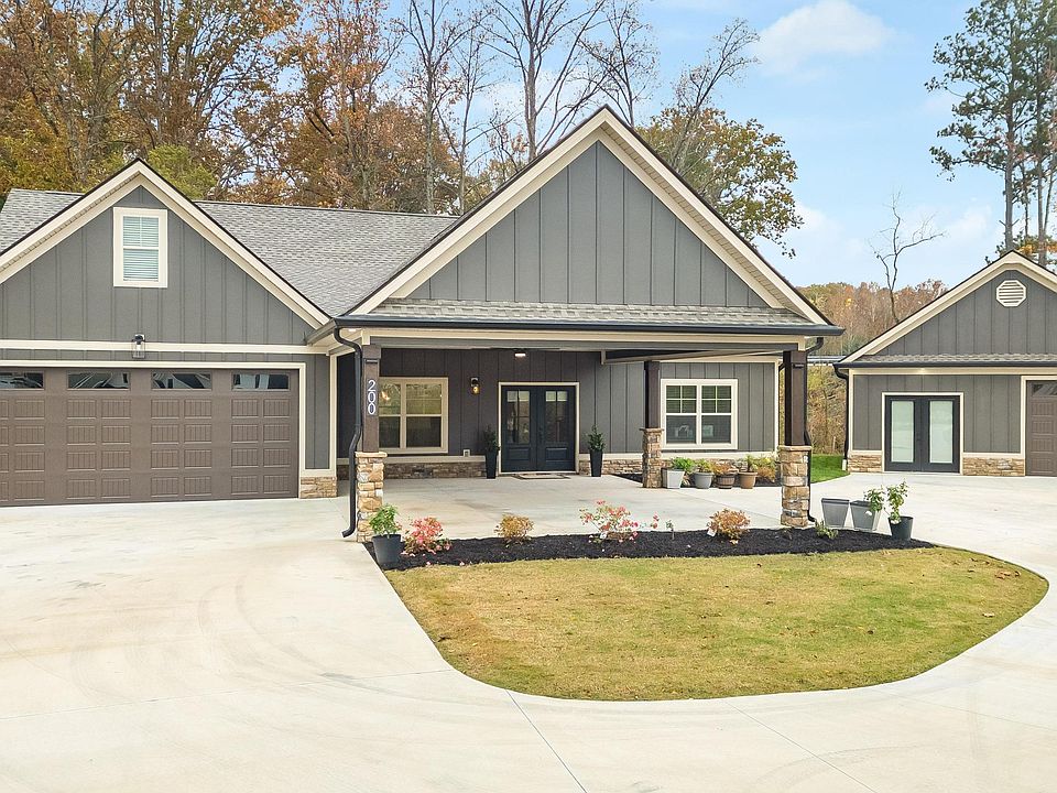 Two additional bedrooms and a full bath are located on the opposite side of the home, providing comfort and privacy for guests. The property includes an attached 2-car garage, a porte cochère for covered guest parking, and a detached 22 x 25 garage/workshop with dual mini-split systems — perfect for year-round use as a hobby space or storage. Quality finishes such as Hardie siding, stone accents, gutter guards, and a white vinyl privacy fence make maintenance simple. Conveniently located near I-75, shopping, and dining, this home combines country tranquility with modern convenience. Schedule your showing today and make this your home for the holidays!