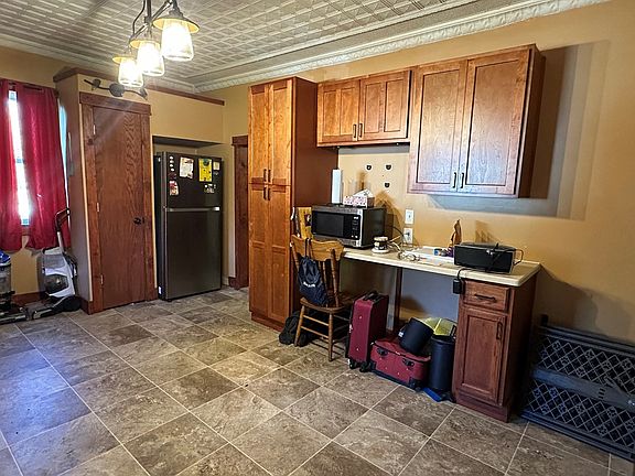 Welcome to this roomy village 2 story home. Updates include kitchen cabinets, dove tail soft close drawers, new counters, flooring and 5 burner gas stove. First floor laundry room/office. Primary bedroom on the first floor. The exterior includes a 2-car detached carport, storage shed and garden shed.