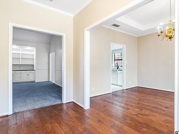This exquisite 3 bedroom 2 bath home is just minutes from the conveniences of Wills Point while also retaining its country charm. As you enter the inviting foyer, you are immediately greeted with a spacious formal dining room on the right which opens into the charming galley style kitchen that has been updated with new paint, backsplash, and granite countertops. Off the eat-in kitchen is access to a beautiful living area, laundry area, and two car garage. The living area offers vaulted ceilings, custom built-ins, and a wall of windows letting in the perfect amount of natural light. From the living room travel down the hall to two spacious bedrooms offering cedar walk-in closets and a beautifully updated bathroom. Further down the hall is the spacious master bedroom with a spa-like master ensuite perfect for relaxation after a long day. The master suite also provides access to the cozy back yard. With a large covered awning, this house offers ample parking for your cars and any additional toys. Come find your place to rest and relax, this delightful home is a must see!