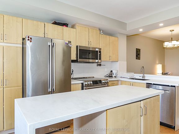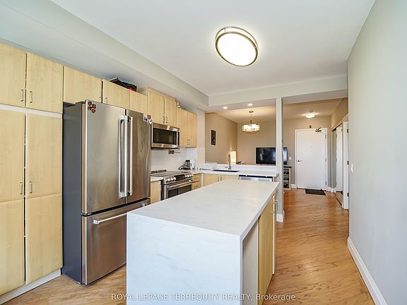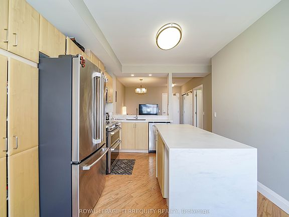 Welcome to Compass Creek Condos, Spacious One bedroom with den at 710 Square Feet. Open Concept kitchen with large centre Island and Breakfast bar, . Corian countertop with under mount sink and newer stainless steel appliances. Separate living room, dining room, and den. Heating, Electricity and Water all included in the rent. Building offers Gym, Outdoor Pool with sundeck, BBQ in patio, Party room, Sauna, visitor parking and Backing onto Cooksville Creek Trail. Walk to Square One, and city Centre. Close to Cooksville GO train station, 401/403/QEW, bus stop right in front of the building. One underground parking spot.