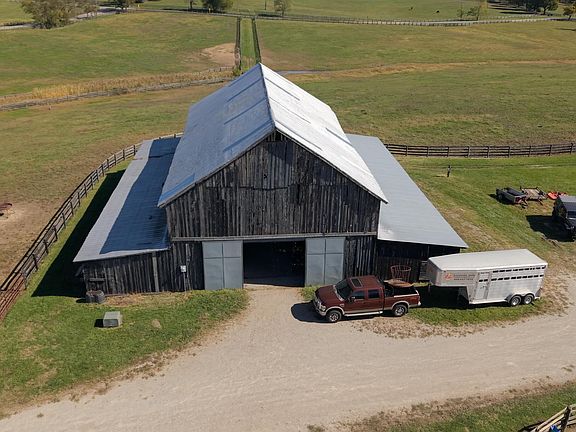 A rare opportunity to purchase an outstanding horse farm complete with client base and cash flow. Keeneland, Winstar, Lanes End, Ashford, Bluegrass Airport within 15 minutes. Downtown Versailles is 5 minutes. Raised here: Girvin winner G1 Haskell, Captain Steve (winner Dubai World Cup), King Congie (Tropical Park Derby), My Miss Storm Cat and many others. This 33 acre farm has 17 stalls and double fenced 4 board oak fencing, with 8 seperate pastures. The main house is a ranch with hardwood floors on the diagonal, vaulted, vaulted ceilings, open floor plan, walk-out basement, 4 bedrooms, 3 full baths, geo-thermal heating/cooling, and over 3,100 square feet of living space. There is a barn apartment for farm help. Magnificent Kentucky sunsets and Woodford County living at its best. Dont miss this special opportunity.