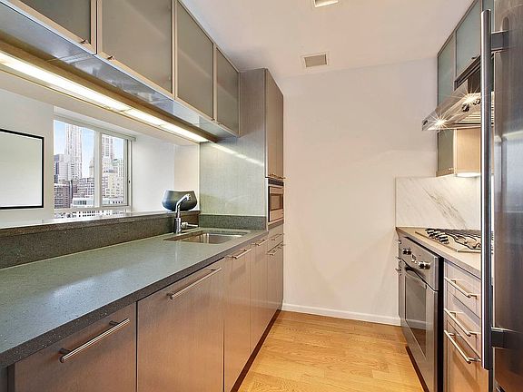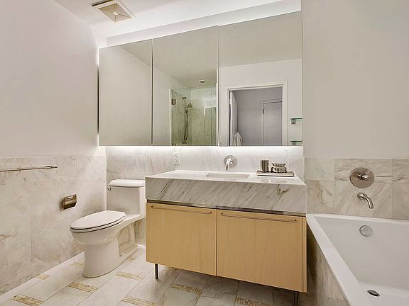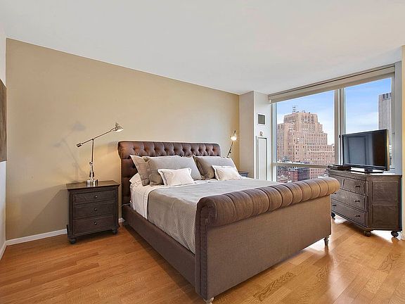 Don’t miss this opportunity to live at this gracious one bedroom at 200 Chambers Street! This home is one of the highest floor one bedrooms in building. The open layout features an extra large main bedroom suite, gracious main bath, ample walk in closet, and formal foyer entrance with an additional half bath for guests. The large open kitchen has a passthrough to entertain through the ample living room space which has a separate dining nook or home office space. The well appointed clean and modern kitchen features Viking stove and stovetop, Subzero refrigerator, and Bosch dishwasher. 200 Chambers Street was finished in 2007 and features full service 24-hour doorman/concierge. The impressive white marble lobby, which will go through additional renovation, is connected to the beautifully lit courtyard and waterfall. The resident’s lounge and beautifully lush landscaped rooftop terrace has been updated. Sunbath or enjoy your afternoon lunches and dinner amongst the rooftop gardens. The building also features a children’s playroom, state-of-the-art gym, and bright sky lit swimming pool. Access to parking garage in building available through for additional fee. An abundance of restaurants, Wholefoods, Soul Cycle and more are just steps away from building. Convenient to many transportation hubs including the Oculus nearby, parks and recreational centers.