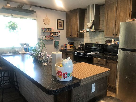4/2 double wide on .66 of an acre. 3 of the rooms have large walk in closets. Needs minor repairs, however 100% livable. Will come with all appliances, 18’ above ground pool & children’s climbing dome, trampoline. Split floor plan, master is on opposite side of home. Master has huge bathroom, dual sinks, separate tub and shower, giant walk in closet. Bathroom door, walk-in pantry door, and laundry room door are all sliding barn doors for the rustic lovers. Kitchen recently remodeled with brand new wallpaper, and paint. 2 living room/den areas. 1 has already been painted to reflect kitchen. 2 kids rooms have been repainted into “mermaid” and “marvel” colors. Some landscaping done, trees and bushes already planted. Huge fenced in backyard, perfect for kids and dogs. Currently finishing 11’x21’ covered wooden front porch. Back porch has 10x8 deck with stairs. Driveway updated from crush run to concrete 1 year ago with no cracks. Under home has moisture barrier protection that was also placed 1 year ago. Selling home as-is. This home does NOT need to be moved. List of minor cosmetics that need to be completed. -Paint in 2nd living room and hallway -Floor replaced in main living areas and laundry room. -Drywall needs patching in laundry room. -2 sections of vinyl skirting replaced in back yard, doesn’t affect integrity, just unappealing. -Minor landscape work in front yard needs completion. Will consider seller finance with reasonable down payment. Can discuss terms. Will also come with all major appliances. Dishwasher, Fridge, Washer & Dryer. Roof is less than 2 years old. We have paperwork on everything we’ve done to upgrade. We also have paperwork on the home regarding it being de-titled.