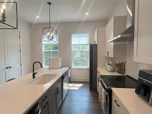 Experience the perfect balance of vibrant city living and private retreat in this stunning 3-level end-unit townhome. Located in the heart of Buckhead, this residence offers 2 bedrooms, 2 bathrooms, a 2-car garage space, and hardwood floors throughout—no carpet anywhere. The main level showcases a bright, open-concept floorplan with 10-foot ceilings, sleek wood floors, and a chef’s kitchen featuring quartz countertops, a large island, stainless steel appliances, and a walk-in pantry. Step out to the covered balcony-the perfect spot to relax or entertain. Upstairs, both bedrooms continue with wood flooring (no carpet!), including a serene primary suite with tray ceiling, long walk-in closet, and primary bathroom has double vanity and frameless glass shower. A secondary bedroom, full bath, and laundry complete the upper level. The lower level provides direct access to the 2-car garage with plenty of storage. As an end unit, this home offers extra natural light, added privacy. Perfect for young professionals seeking a stylish city address, or investors looking for a high-demand, low-maintenance rental opportunity. Residents enjoy Buckley’s open-air clubhouse with outdoor fireplace and firepit, plus an unbeatable location—just steps from Chastain Park, Trader Joe’s, and Buckhead’s top dining, shopping, and entertainment. This home combines sophisticated design, unbeatable location, and low-maintenance living—an opportunity you won’t want to miss!