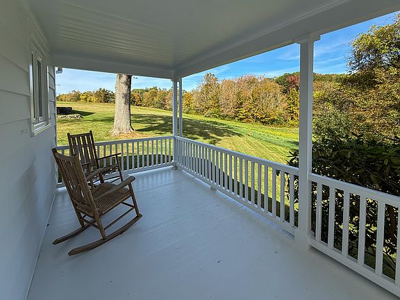 Historic barnsCovered porchSweeping viewsSeparate dining roomComfortable first-floor bedroomsMature forestsOutdoor patio