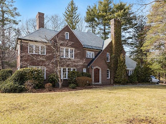 Stunning brick & slate Tudor Revival style property, sited on an acre and half of lush grounds and mature trees. This two-story hip-roofed structure w/multiple gables &entrance w/stonework was designed by noted architect Edward Hennan. A beautifully appointed board & batten foyer with a graceful stairway welcomes you to this 17+ room residence. First floor include a Living room w/fireplace, sun room, formal Dining Room , Library w/fireplace, sunny chef's kitchen with Top of the line appliances, a family room with cathedral ceiling, built-ins and views of patio and backyard bordered by a stone wall and brooke. The second floor has a Master Suite with fireplace, walk in closet and office. Three additional large bedrooms & with bathroom complete this floor. The third floor has two charming bedrooms with a full bath. The lower level features a Home Theatre, entertaining kitchen, brand new bathroom. Two car attached garage w/EV charging. Truly one-of-a-kind Estate in the heart of Belmont!