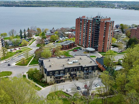 Discover the epitome of luxury living at "The Roxborough" Condos in Downtown Barrie! This elegant 3-story stone building is surrounded by lush gardens, a private gazebo, and an outdoor dining space. Inside this 850 sq ft, 2-bedroom ground-floor unit, you'll find a balcony overlooking the gardens, 9ft ceilings, hardwood floors, remote blinds, an open-concept kitchen, dining, and living area, as well as in-suite laundry. The building features underground parking, a party room, a guest suite, and visitor parking. Enjoy a hassle-free lifestyle just steps from the Waterfront and Downtown Barrie's vibrant amenities restaurants, shopping, theatres, art galleries, festivals, and the renowned Farmers' Market. Units in this quiet, highly sought-after building are rarely available don't miss your chance! Recent updates include a new roof (2023), a new patio, and a new gazebo. Parking spot #24, Locker #204 (5x8).