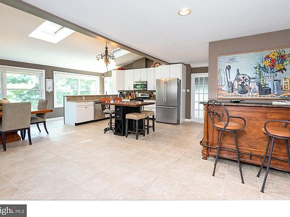 Welcome to 200 W Conestoga Road, a charming stone home with lots of curb appeal nestled on a gorgeous corner lot located in close proximity to the Devon train station. This magnificent three bedroom, two and a half bath home has been beautifully updated both inside and out and boasts many unique architectural elements starting with the graceful, stamped asphalt driveway and adjoining stone retaining wall. A lovely flagstone patio and elegant front door welcome you into the inviting formal living room anchored by a handsome, gas powered fireplace where you'll curl up to cozy fires, in addition to beautiful hardwood flooring and crown molding. The living room flows into the huge, eat-in kitchen showcasing classic cabinetry, gleaming granite countertops, stainless steel appliances, and tiled backsplash and flooring as well as a vaulted ceiling with skylights and a full wall of windows providing tons of natural light and lovely views of the scenic outdoors. A French door leads to the spectacular, generously sized terrace featuring built-in seating and overlooking the expansive rear grounds, an ideal spot for outdoor dining, grilling, entertaining or just relaxing. Back inside, a moon gate doorway opens to the delightful fam room accented with light-filling double windows and hardwood flooring, along with double doors leading to the marvelous, circular side patio. Upstairs you'll find the private master suite featuring sleeping quarters, a large bathroom with double vanity, and loft that could be used as an office or study. Two additional nicely sized bedrooms are serviced by the full hall bath with pedestal sink and gorgeous tilework. The lower level is home to the laundry area, cute powder room with designer tilework, and access to the attached garage. A large corner lot in a prime location, charming curb appeal and unique architectural elements, spectacular terrace plus two additional patios, gorgeously remodeled kitchen with great views, tastefully updated baths, abu