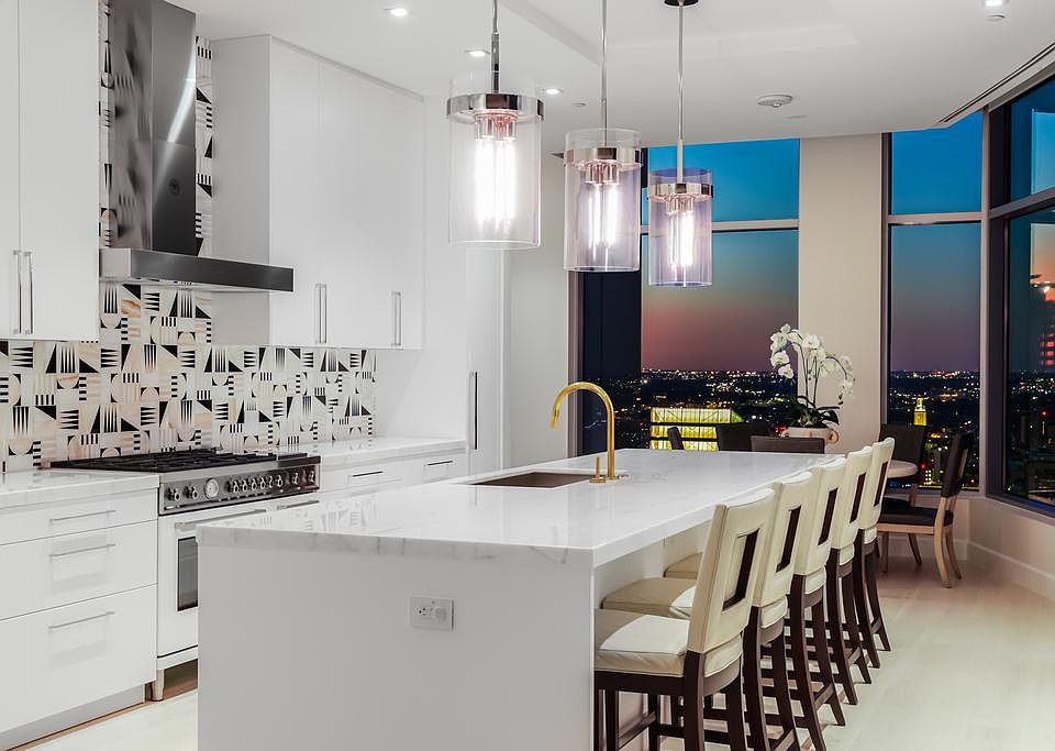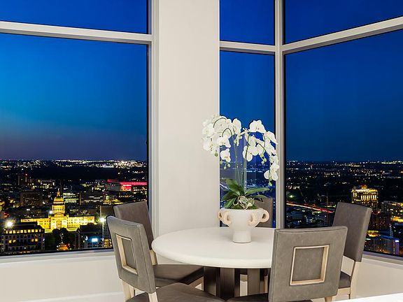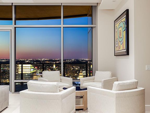 THE PENTHOUSE AT THE AUSTONIAN. Your penthouse in the sky awaits at the top of Austin's most desirable address, The Austonian, with 180-degree views sweeping from the Lake past the capital and out to the Hill Country. From your balcony you can people-watch the downtown streets, be the first to know when the UT tower lights up with a win and marvel as summer thunderstorms approach. LUXURY LIVING AT THE AUSTONIAN. Outfitted with the utmost attention to detail by renowned design/build firm McWalters Collective, every surface and fixture speaks of luxury. Wide-plank European oak floors provide an airy backdrop for the light pouring in from the arced floor-to-ceiling windows. Throughout you will find marble individually-selected by the slab for its beauty, lighting that sparkles and glows, hand-placed mosaic tiles and fixtures that are crafted with the integrity of fine jewelry. IN THE HEART OF DOWNTOWN AUSTIN. The floorplan cleverly provides a feeling of openness while providing discrete spaces. The formal living and dining rooms connect to a steel-window-enclosed study that lets in light but provides separation. The gourmet kitchen and adjacent family room is accessible but tucked away behind a marble-accented bar in the main room. Secluded in its own wing, the sophisticated primary suite hosts plenty of storage and a marble-ensconced bath.