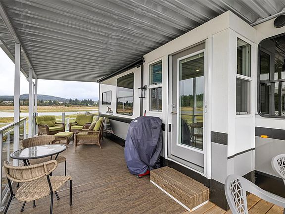 Welcome to Surfside RV Resort — a truly unique, gated oceanfront retreat in the charming seaside town of Parksville on Vancouver Island. This exceptional vacation property features a beautifully appointed 1-bedroom, 1-bath fixed trailer built in 2023, fully furnished and thoughtfully equipped with all the modern comforts you need. A large, covered patio with glass railings lets you sit and enjoy the unobstructed views of the mountains and all the beauty that this diverse nature reserve has to offer. Just a one-minute stroll to the beach, you'll enjoy the natural beauty and peaceful surroundings for years to come. Surfside’s outstanding amenities include a spacious clubhouse, tennis courts, and a pool and hot tub complex, ideal for relaxing or staying active, whatever your mood. Your perfect getaway, ready to enjoy.