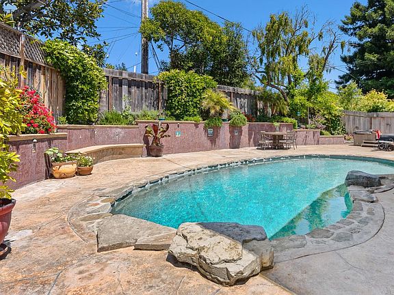 Welcome to your dream home in Capitola's coveted Cliffwood Heights! Tucked away on a quiet, family-friendly street and just a short stroll from New Brighton Beach and Capitola Village. Completely remodled in 2000, this 2,617 sq ft home on a 6,142 sq ft lot blends comfort, flexibility, and coastal charm. With five spacious bedrooms and four full bathrooms, including two en-suite bedrooms, one of which is conveniently located on the ground floor. The open-concept kitchen features granite countertops, stainless steel appliances, and a breakfast bar that seamlessly flows into the dining area and oversized living room complete with a cozy gas fireplace. Step outside into your private backyard retreat, featuring lush landscaping, a solar-heated pool, stamped concrete patio, built-in bench, and retractable awning - perfect for relaxing or entertaining. A private gate opens to "hidden" Cortez Park- ideal for pets and kids! Upstairs, enjoy three bedrooms, including a luxurious primary suite with vaulted ceilings, views of the pool and park, walk-in closet, double vanity, soaking tub, and stall shower. Fresh interior paint, new lighting, DSL/Cat5 cabling, a 2-car garage, and easy access to top schools, parks, and Hwy 1 complete this special home.