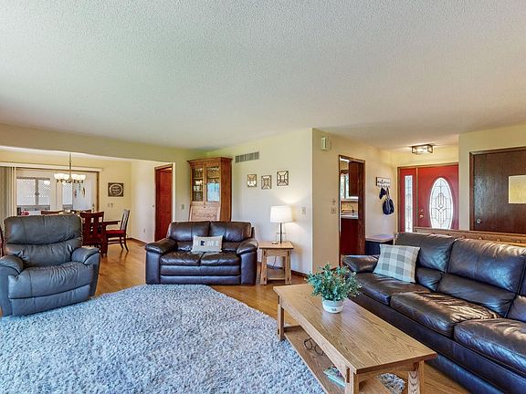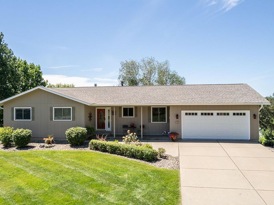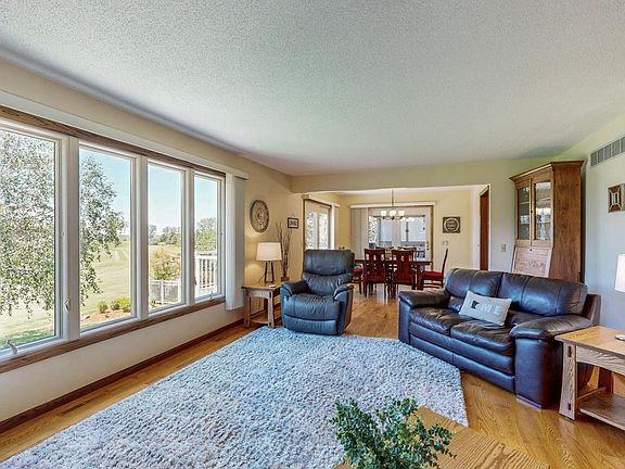Well maintained walkout ranch style home with 5 bedrooms, 3 baths and 978 sq. ft. of garage space! This amazing home is located along a quiet dead-end street close to the Elementary school and at the tee box of hole 7 on the Country Club. Main floor features three bedrooms, two baths, eat-in kitchen, formal dining, living room, hardwood floors, tons of natural light and beautiful views of the 7th fairway. Primary suite offers double closets, private ¾ bath and fantastic view. Finished lower-level features two bedrooms, family room, bath and large laundry area. Updates include roof and gutters (Fall 2023), high-end replacement windows and maintenance free decking with aluminum/glass railing. Outside enjoy the private covered porch, deck, front porch and lower-level patio. Tuck under garage is ideal for golf cart, lawn mower, bikes and additional storage. Just move in and enjoy!