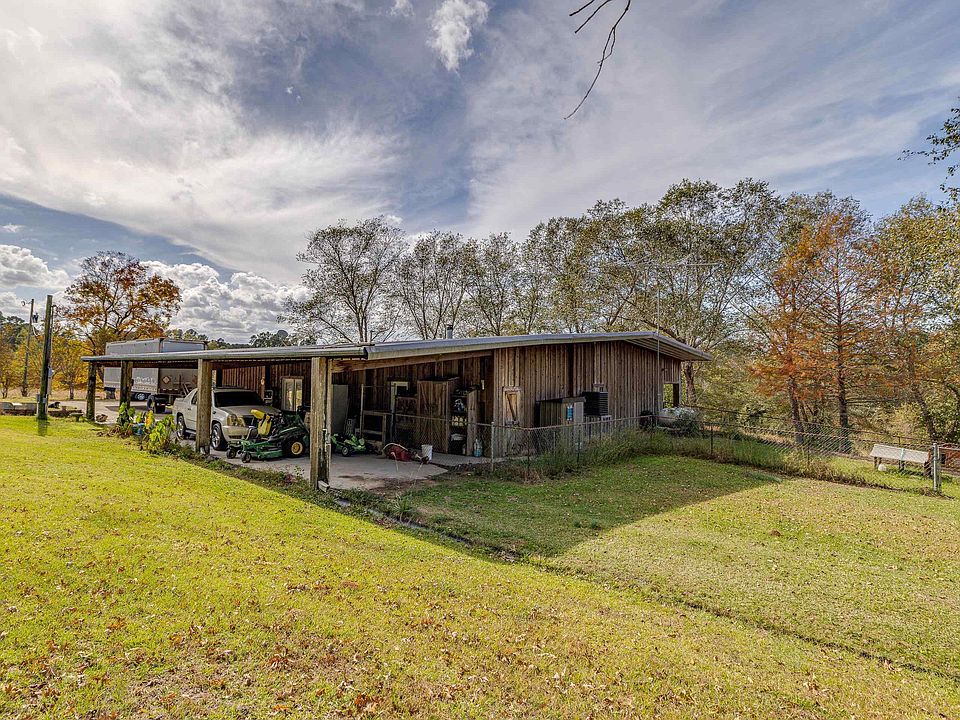 Welcome to this spacious home set on approximately 30 acres in Jackson Parish. Entering from the covered carport, you’ll step into an open~concept layout featuring a large kitchen with tile flooring, tile countertops, a double oven, abundant cabinetry, and an oversized island with barstool overhang—perfect for everyday use and entertaining. The kitchen opens directly into a massive living room highlighted by a stone fireplace and plenty of room for gathering. Just off the kitchen is an oversized laundry room complete with a utility sink and direct access back to the carport for added convenience. To the right of the living room, you’ll find the primary suite featuring stained concrete floors, a huge walk~in closet, and an en suite bathroom with a large jetted tub and separate shower. Off the left side of the living room, a hallway leads to two generously sized bedrooms—one with an accordion~style closet and steel door—and a large walk~in utility room offering excellent storage potential. This hallway also includes a full bathroom with a tub/shower combo. A door off the living room opens to the covered back porch, providing a quiet place to relax and enjoy the surrounding acreage. With its open layout and expansive land, this property offers both comfort and endless possibilities for country living..