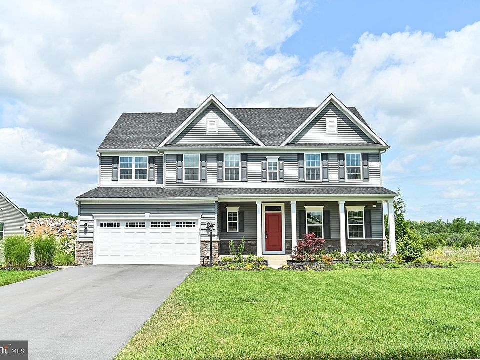 Welcome to Mountain Valley Estates! This St. Lawrence Model home sits on a on ½ acre lot, and features 4 bedrooms, 3 full baths on upper level and a half bath on main level. Also featuring a covered deck to extend your entertaining space and enjoy your surroundings! dream kitchen with an oversized island, quartz countertops, wood floors & stainless steel appliances! ,Enjoy open concept living - where you can cook, entertain or kids can finish homework at the kitchen island! Game nights, movie nights, or entertaining friends just got a LOT easier with this large and open family room, versatile floor-plan offer spaces you can use for a home office, a study, even a first floor bedroom! Feel your stress melt away as you enter your new owner's suite - equipped with an en suite bathroom and large walk-in closet!, All secondary bedrooms are great sized, perfect for the growing family or overnight guests!. Enjoy your brand new home in a great community only 8 miles from Old Town! Spend the weekends perusing the brick lined streets and hit up the local shops, dining, grocery stores, schools and festivals, convenient location close to I-81, I-66, Rte. 50 and other commuter routes just minutes away.