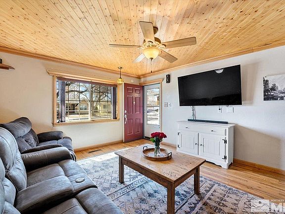 Say hello to cozy, serene living with this special single-story, located just down the street from Drake Elementary! It's a great location in central Sparks near McCarran and Pyramid with shopping, restaurants and entertainment close by., Warm wood and bright interiors make this open-concept especially inviting. Beyond the living area, discover a spacious kitchen with light cabinetry, sleek tiling, dual sink, and stainless steel appliances. With a cathedral-style ceiling featuring decorative wood beams, the adjacent room highlights a beautiful fireplace and abundance of natural light, making it an ideal space for relaxing, entertaining, and day-to-day living. A large primary suite includes a sizable closet, sliding glass doors, and private bathroom with tasteful enclosed shower. Additional bedrooms provide ample area for any lifestyle or purpose. Outside, the property showcases a huge deck, leading to the fully-fenced backyard with mature trees and an adorable pathway meandering along the perimeter. Other notable features include a recently-upgraded HVAC system with an air conditioning unit and electrical panel in 2022, large garage, and ceiling fans throughout the home. Your dream home awaits!