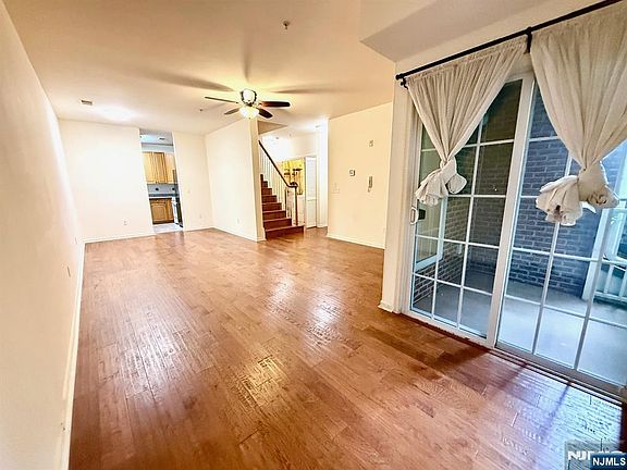 Young condo 1225 SF on 2nd & 3rd floors in mint condition. Engineered floors throughout entire unit. Gettysburg model. Dishwasher, Washer, Dryer, Microwave & new SS refrigerator included. Water heater a few months old. Marble countertops & oak cabinets in kitchen. Both baths have ceramic-tiled walls, ceilings, floors and Corian vanity tops. LR: 15'x14, DR: 10'x12', Kit: 10'x10'8, BRS: 14'10X12' & 15'8X14'6. 9' ceiling on 1st level. Ceiling fans in living room & 1st-level bedroom. 1 garage plus 1 Covered parking space outside the Garage. Within 10-12 minute walk to Harrison Path Station. Near Rt. 280, Rt. 21, Turnpike, Parkway, NJPAC, Prudential Center, Red Bull Stadium, NJIT, Rutgers, etc. Convenient to shopping, dining, parks and schools. Flood insurance covered by condo HOA fees. Buyer to pay $250 move-in fee & $200 moving deposit required by condo association. Balconies in entire community cannot be opened or used until fixed. Access to gym/clubhouse/pool will be included through 11/20/2026. Buyer can renew the recreation membership afterwards. Use of shuttle bus to Path Station can be paid during open enrollment every November. Monthly HOA fee: $420.64 includes Flood Insurance. One domestic pet under 40 pounds is allowed. Offers need to be preapproved by a portfolio lender if financing is required.