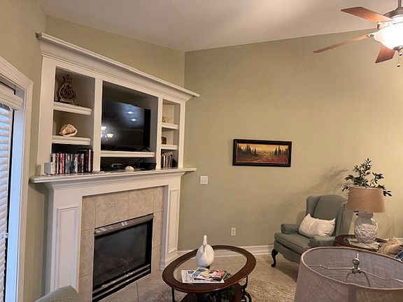 Cozy gas fireplaceCorian countertopsEnsuite bathVaulted ceilingsGarden tubTile flooringEnclosed screened-in patio