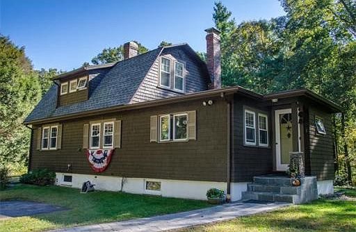 Thoughtfully renovated 2 bedroom gambrel cape on 2 acre duplex lot. Owners have completed many updates and improvements including: new natural gas boiler (steam), new windows, custom built-ins, updated electrical system, wood flooring. Very private country location which is close to major commuter routes. 2 car detached garage. Home is set back off the road abutting horse property and within walking distance to Rowley Country Club. Dodge Road is known to be one of the better locations in Rowley.
