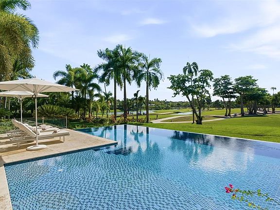 Villa D’Or, a Ritz-Carlton Reserve branded estate within the exclusive East Beach community of Dorado Beach Resort, stands as one of the largest, most architecturally significant residences ever offered. Expanded and fully reimagined, this modern masterpiece delivers over 10,700 interior Sq. Ft. and 13,300 total Sq. Ft., positioned on a premier corner homesite with sweeping ocean, golf course, and lake views. From the moment you enter, a dramatic 20-ft coffered-ceiling foyer frames breathtaking sightlines to the infinity pool and the fairways beyond, setting the tone for a home that blends scale, privacy, and resort-caliber luxury. The first level offers five generously sized bedroom suites, all with soaring ceilings and custom walk-in closets. Two suites include steam-room showers, outdoor showers, and natural stone soaking tubs, creating spa-like retreats. Two additional suites feature private outdoor terraces, while a fifth bedroom serves as a flexible guest or service quarters with a full bathroom. The primary suite, situated in its own secluded wing, enjoys direct ocean views, a solid stone bathtub, indoor/outdoor showers, a spacious walk-in closet, and an expansive private terrace—an ideal sanctuary with unmatched privacy. The home’s second-level expansion is a destination of its own, designed for world-class entertainment and elevated living. This level features a rooftop outdoor kitchen equipped with a Grillworks grill, beverage fridge, and ice maker; a stunning glass jacuzzi with panoramic ocean and fairway vistas; and an expansive sunken lounge ideal for gatherings or nightlife experiences. Additional amenities include a backlit marble bar accented with Baccarat lighting, an upstairs bar, a temperature-controlled wine cellar, cigar humidor, dedicated office, and a half bathroom. A fully equipped media room with sound-paneled walls and a kitchenette with Wolf induction cooktop provides the perfect environment for cinema, gaming, education, or studio use. Also located on this level is a complete in-law/guest suite offering a kitchenette, custom Italian closets, soaring ceilings, and a spa-quality marble bathroom with a freestanding porcelain tub. Outdoor living throughout the property is resort-inspired, offering multiple terraces, lounging areas, outdoor showers, curated tropical landscaping, a private sauna, and seamless indoor–outdoor connectivity. The architectural scale, refined finishes, and thoughtful design elements including imported stones, custom millwork, Baccarat fixtures, and smart-home features—create an atmosphere of unparalleled luxury. Ideally positioned near Spa Botanico and moments from the world-renowned amenities of Dorado Beach Resort, Villa D’Or represents a once-in-a-lifetime opportunity to own a bold, iconic estate within the Ritz-Carlton Reserve–branded enclave of East Beach. A true trophy property in every sense.