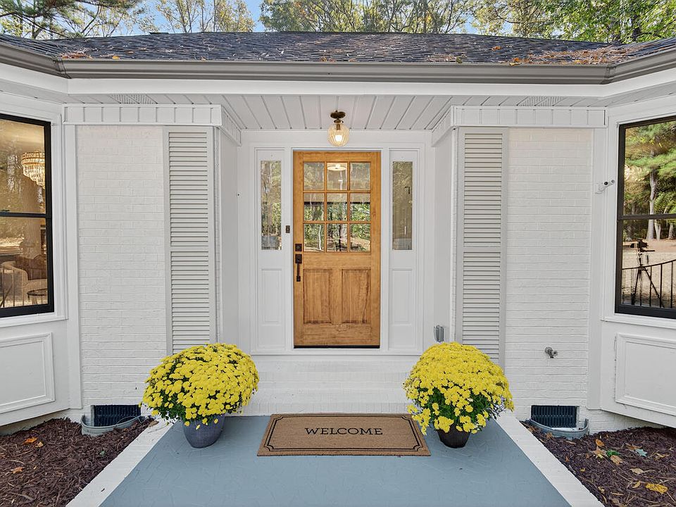 Beautifully renovated one-level brick home on 1.5 private acres in the Dublin Woods neighborhood in Cary. Step inside this light-filled layout with modern finishes and enjoy a view of the in-ground pool from almost every room of the house. Spacious primary suite with a versatile sunroom and backyard views. Hardwood floors, designer lighting/hardware, and fresh paint throughout. Outside you have your own private oasis—featuring a sparkling pool, large patio, a greenhouse and wooded backdrop for ultimate privacy. Amazing location off of Harrison Avenue close to Cary Academy and SAS campus. This is a rare opportunity for one-level living with space, style, and serenity.