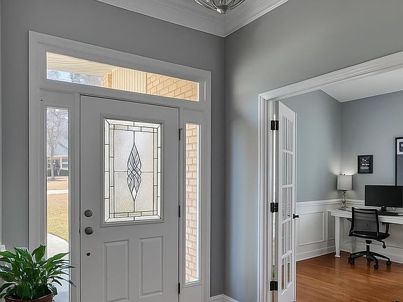 Beautiful full brick home and a highly desired community! This story and I have layout features for spacious bedrooms on the main level and a private upstairs retreat with a bar full bath and extra living space. Gorgeous hardwood floors welcome you into an open great room with a cozy gas log fireplace.The first floor office offers work from home flexibility. Situated on a corner lot, this home, combines charm, comfort, and functionality, and one inviting package. *Great in-law living space!