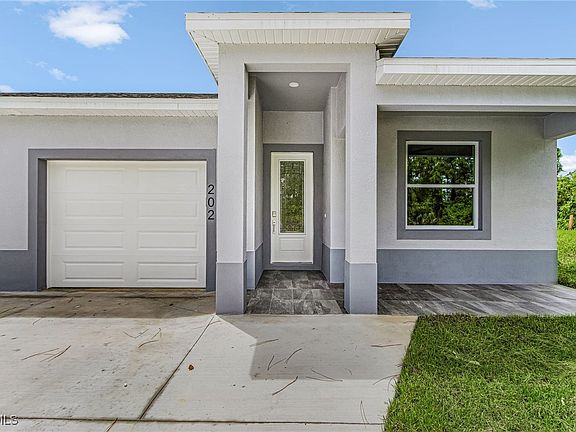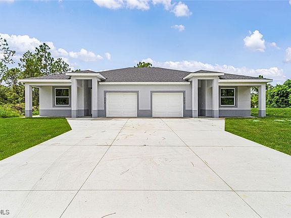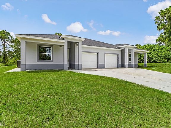 Step into modern, effortless living at this pristine 2025-built duplex, situated on 200/202 E 12th St in the rapidly expanding Lehigh Acres community. Each mirror-image unit features three generously sized bedrooms and two bathrooms outfitted with high-end fixtures and elegant finishes. Sunlight floods the open-concept kitchens and living areas, where sleek cabinetry, premium appliances, and stylish countertops invite both everyday meals and entertaining. Every bedroom offers a finished closet, while each owner enjoys the convenience and security of a private attached garage. Built for quality and comfort, the home’s features include durable block-and-stucco construction, tile flooring throughout, impact-resistant windows, a water softener, well water and septic setup. Set on a spacious 0.24-acre lot zoned RM-2—perfect for rental or multifamily use—this property stands out with no HOA fees.