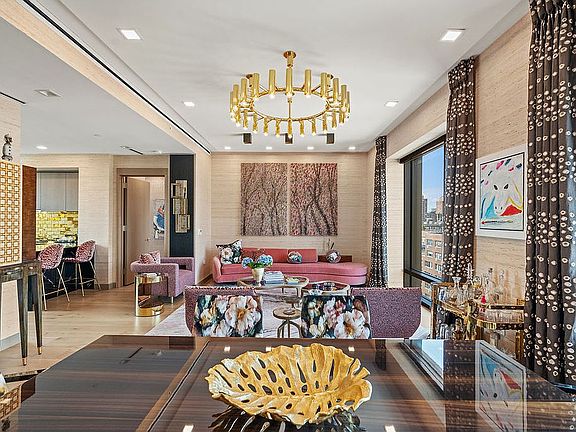 Welcome to this exceptional 2-bedroom, 2.5-bath residence at 200 East 21st Street, offering sweeping north, south, east, and west exposures and a masterfully designed interior in the heart of Gramercy. Bathed in natural light through over 8-foot-tall bronze-framed windows, the home features thoughtfully proportioned spaces with 7-inch-wide plank oak flooring in a custom smoked oil finish and grand interior doors appointed with luxurious Valli & Valli hardware. The custom Poliform kitchen, designed by the renowned firm Champalimaud, is a showcase of modern elegance with bespoke smoked oak cabinetry, honed white sand Quartzite countertops and backsplash, sleek Dornbracht fixtures, and a fully integrated Miele appliance suite—perfect for both refined entertaining and everyday living.