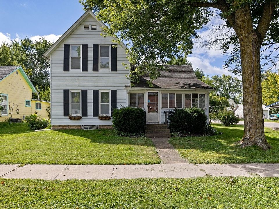 Discover small-town living in Olin, just 26 miles from Cedar Rapids and less than a 20-minute drive to Anamosa. As you enter, you are greeted into the main living space where you can use it as your living room or dining room; you choose. Just off the main area is a bonus room, use it as a TV room, office, or a guest bedroom. Attached to this room is the Jack and Jill full bath and the main-floor bedroom. Up the stairs is a landing and bedroom number two. This property is situated on a corner lot in town, featuring an oversized 2-stall garage (24x36) with a heated workshop, ideal for projects, hobbies, or additional storage. Inside, you'll appreciate the abundance of natural light from the large windows, the convenience of main-level laundry, and the enclosed front porch that provides additional living space. Low Taxes, Sold As Is_Quick possession available—move in and make it your own!