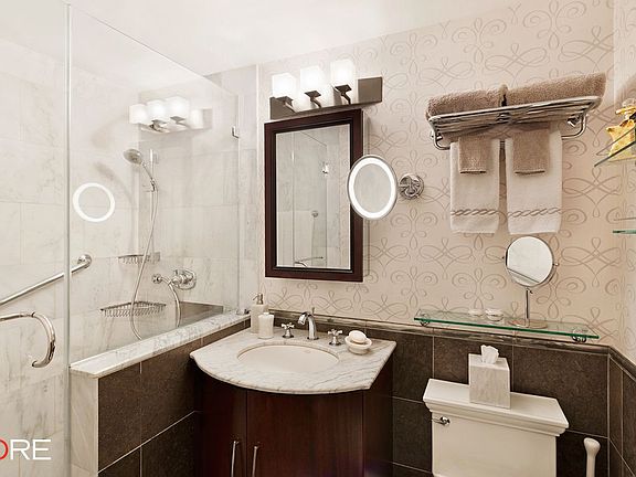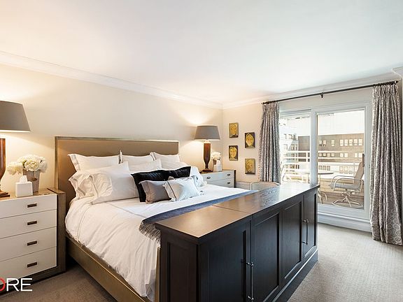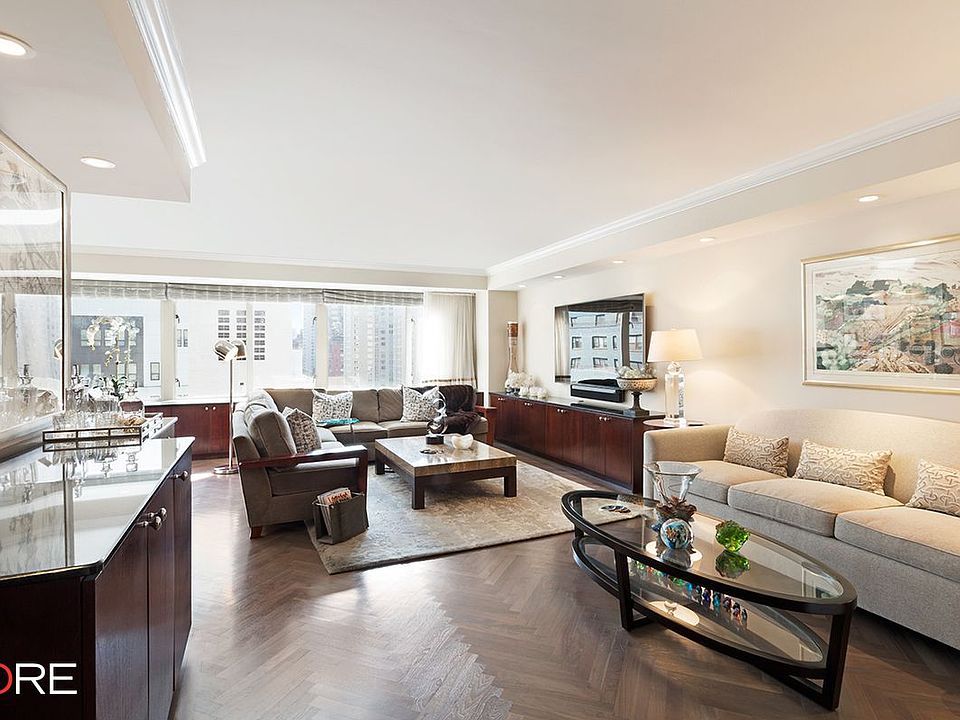 Perched on the 17th floor is one of the most expansive 1-bedroom units at the white glove 200 East 57th Street. Flooded in light with open exposures to the east, this apartment offers peace and serenity from end to end. A large foyer with three closets conveys the generosity of size and space found throughout. The bedroom has a private balcony and features customized built-ins, a walk-in closet and en-suite bathroom. The oversized living room is detailed with herringbone hardwood floors, wired Sonos entertainment system, built-in storage, and the windows are outfitted with electronic shades. Off the living room is the dining area, efficiently set beside the kitchen complete with custom cabinetry and a suite of high-end appliances. Basic cable and utilities are included in maintenance. Washer/dryer and pets are permitted. The hallways are newly renovated and the lobby will be next. Amenities include a roof deck, fitness center, and extra storage. Conveniently located near the 59th Street transportation hub and some of the best restaurants and shopping in the city. Maximum financing is 65% and 50% of the annual tax is deductible.
