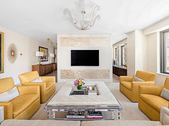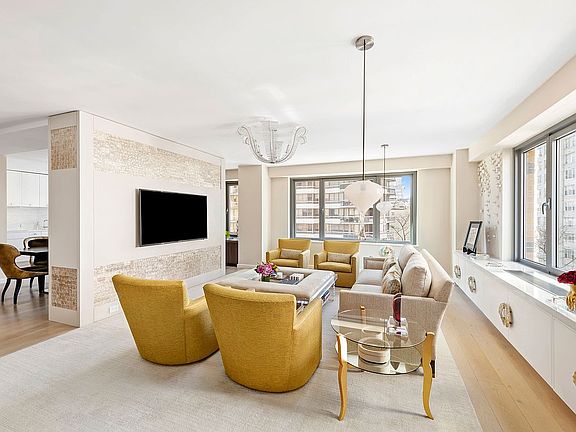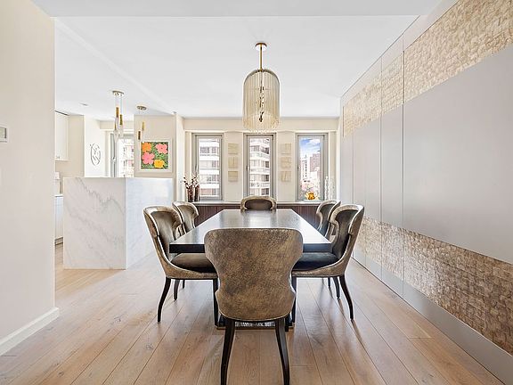 This home has been meticulously decorated by highly acclaimed NYC Interior designer Robin Baron. Enter into a gracious foyer with a large, customized walk-in closet. The well-proportioned corner living room is lined with both west and north-facing windows. The exquisite, windowed kitchen has marble countertops, white matte lacquer cabinetry, Lisa Jarvis hardware, top-of-the-line appliances including a Miele refrigerator and dishwasher with custom front panels in white, Miele convection oven and cooktop with hood, microwave, Marvel wine refrigerator, garbage disposal and Instant Hot. The kitchen is open to a spacious sun-flooded formal dining room.