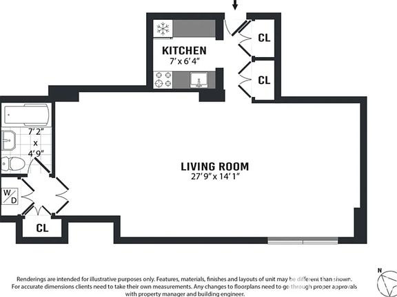 Condo level finishesGreat natural lightSouth facing alcove studioDouble pane windowsExcellent closet spaceStainless kitchen