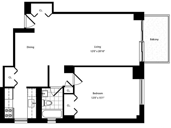 This apartment has great light coming from a windowed kitchen facing East and a balcony facing North, hardwood floors throughout, a gourmet kitchen with granite countertops, custom cabinetry, and stainless steel appliances.