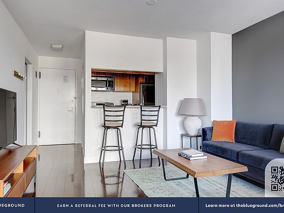 Show up and start living from day one in New York with this roomy studio Blueground apartment. Youll love coming home to this thoughtfully furnished, beautifully designed, and fully equipped Yorkville home with stunning balcony views over the city. (ID #NYC240) The advertised rate of $5,410/month is the lowest available price, based on a 12 month(s) stay with a move-in date of May 2, 2026. Rates vary depending on the duration of stay, season, and other parameters. For exact pricing and additional pricing components, please visit our website and enter your desired move-in and move-out dates. The rate is applicable when billed upfront; it can be higher if billed in multiple payments. Brokers are welcome to reach out. Were you looking for an unfurnished lease? Try Blueground instead and upgrade from unfurnished to furnished living: - Furnished at rates comparable to unfurnished - No setup or furniture costs - save thousands - Move-in ready - save time, just bring your suitcase Designed with you in mind Thoughtfully designed with bespoke finishes, modern furnishings,and a fully equipped kitchen,youll enjoy that Im home feeling with this Blueground apartment. Whether youre lounging in your cozy living room streaming the latest and greatest entertainment on the smart TV or premium wireless speaker, or getting some well-earned rest on the superior quality mattress with luxury linens, youll fall in love with everything this Yorkville apartment has to offer. Sleeping arrangements - Queen Bed, 63in/160cm Amenities Building amenities unique to this studio apartment include an on-site - Doorman - Dryer in building - Elevator - Washing machine in building - Pets allowed - Playroom Arrival and ongoing support The entire apartment is yours to enjoy! Throughout your stay, youll have access to our Client Experience team through the Blueground App. You can schedule additional cleanings, submit maintenance requests, and view our neighborhood recommendations with just a few taps. Well share all details upon confirmation of your stay. Other things to note Building amenities may have an extra cost. This Blueground apartment has flexible lease options, allowing you to book it for one month, a year, or more. Pets are welcome, though weight limits and breed restrictions apply and may incur fees. Brokes CYOF. We take great pride in ensuring every photo displayed is shot in our own units with our actual furnishings. That said, we regularly refresh our decor and furniture arrangement, which may differ from whats pictured. Also note Other apartments in this building are undergoing renovations, and you may hear construction noise inside your apartment from time to time The apartment's building is undergoing renovations, and you may hear construction noise inside your apartment from time to time Some building amenities may be unavailable because of current renovations