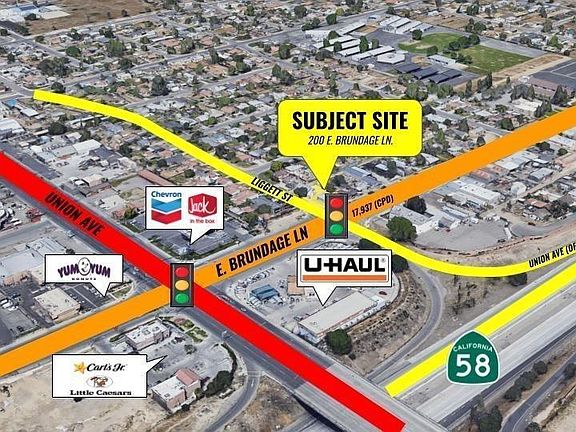 Opportunity awaits at the NEC of E. Brundage Ln @ Liggett St! This is the first noticeable property upon the Union Ave off ramp, HWY 58 Westbound. The immediate businesses include Chevron, U-haul, Carl's Jr, Yum-Yum Donuts and Little Caesars. The parcel is zoned Light Industrial (M-1) on a lighted intersection with fantastic visibility in the City of Bakersfield and between Union Ave & E. Brundage Ln, the car count exceeds 31,000+ CPD which generates fantastic exposure for a future business that plans to establish their brand at this intersection. The site includes a cement pad, also secured by a wrought iron fence and a block wall at the North end of the property. The offsites are completed and because there were previous structures on the property, all utilities are stubbed. A site like this is ideal for FOOD VENDORS but all business concepts are invited to consider an acquisition.
