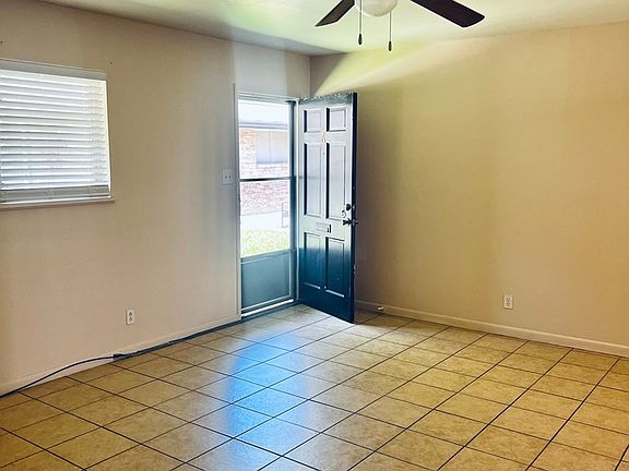 Brick six-plexCeiling fansTile floorsCentral heat and airNice kitchen with appliancesCovered parkingPrivate fenced patio