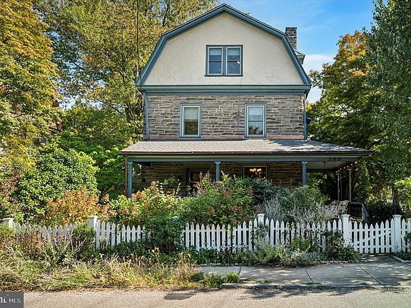Tucked behind a charming white picket fence and lush landscaping, this beautiful 5 bed, 3 bath Wissahickon Schist Dutch Colonial home feels like something out of the Secret Garden. A wraparound porch welcomes you home, inviting slow mornings with coffee and breezy afternoons surrounded by the vibrant greenery. Step inside to a warm and inviting entry foyer that leads to a light-filled living room, where a gas fireplace sets the scene for cozy evenings. The dining room glows with natural light from its elegant bay window, and the modern kitchen, with its soapstone countertops, stainless steel appliances, and spacious island dares you to entertain. Beyond the kitchen, a versatile mudroom or den opens onto a patio overlooking the enchanting garden. Mature fig, peach, and persimmon trees as well as year-round foliage including hydrangeas, roses, and lilies, create a private, leafy retreat that feels worlds away, even though you’re just ablock from Chestnut Hill’s shops, restaurants, and community events. The first floor also features a combination full bathroom and laundry. The sweet corner seat while you head upstairs is another reminder of the charm and whimsy of this home. The second floor hosts three generous bedrooms, one with a reading nook with a built-in bench, and all with ample closets. The large full bathroom off the hallway has a tub that’s perfect for unwinding after a long day. The third floor is a serene escape, featuring a primary suite with two closets and en suite bath, plus an additional bedroom lined with a wall of closets. Additional highlights include dual zoned high velocity forced air, radiator heat, and hardwood floors throughout,a full height, unfinished basement with tons of storage, a detached garage, and a private driveway with room for three cars. 200 E Gravers Lane is a reminder that everyday can feel magical.